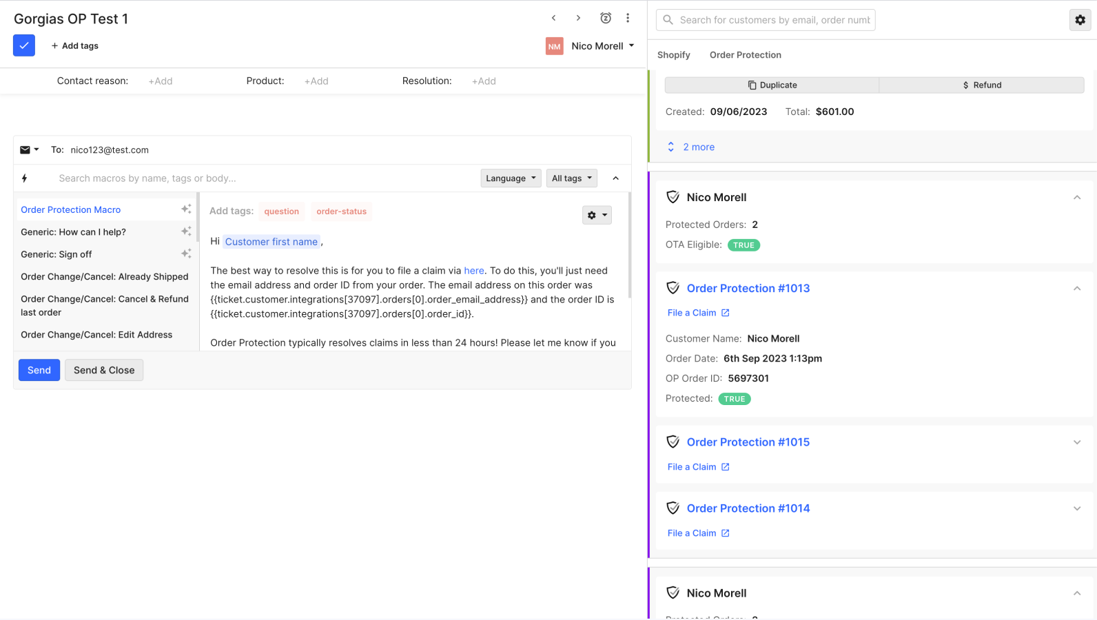 Once the setup is complete, a macro and widget will be automatically created.When it comes to filing claims, you can do that from the Gorgias widget, or