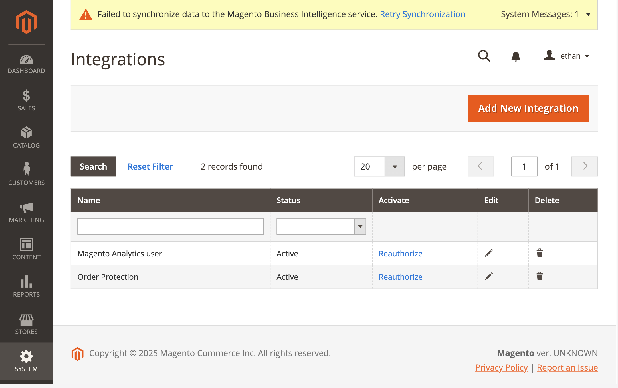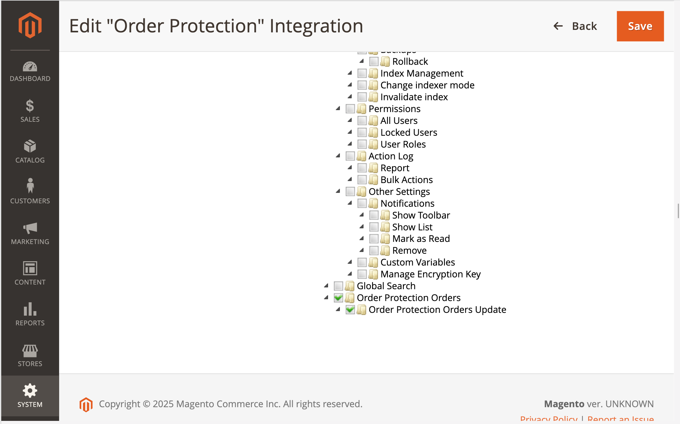 For the Order Protection module to work correctly on your store, you need to ensure it has the API access scopes are configured correctly. Step 1: Go toSystem > Integrations