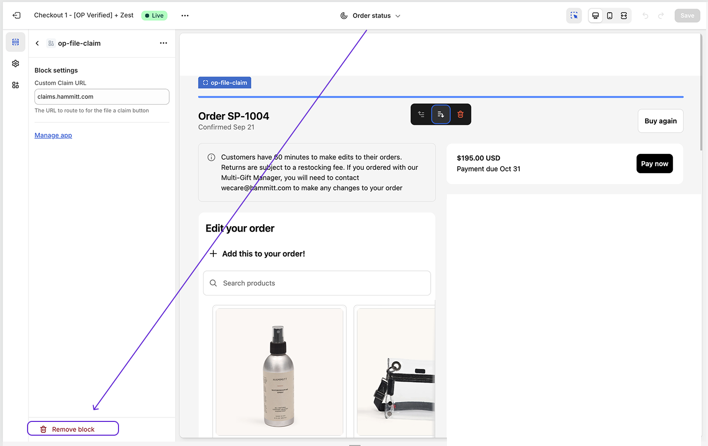 - Remove the Order Protection product